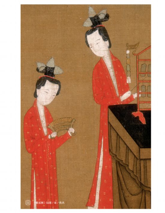 孟元老《東京夢華錄》卷九載,“第七盞御酒,慢曲子”,“勾女童隊入場,女童皆選兩軍妙齡容艷過人者四百余人,或戴花冠,或仙人髻,鴉霞之服,或卷曲花腳幞頭,四契紅黃生色銷金錦繡之衣,結束不常,莫不一時新妝”。