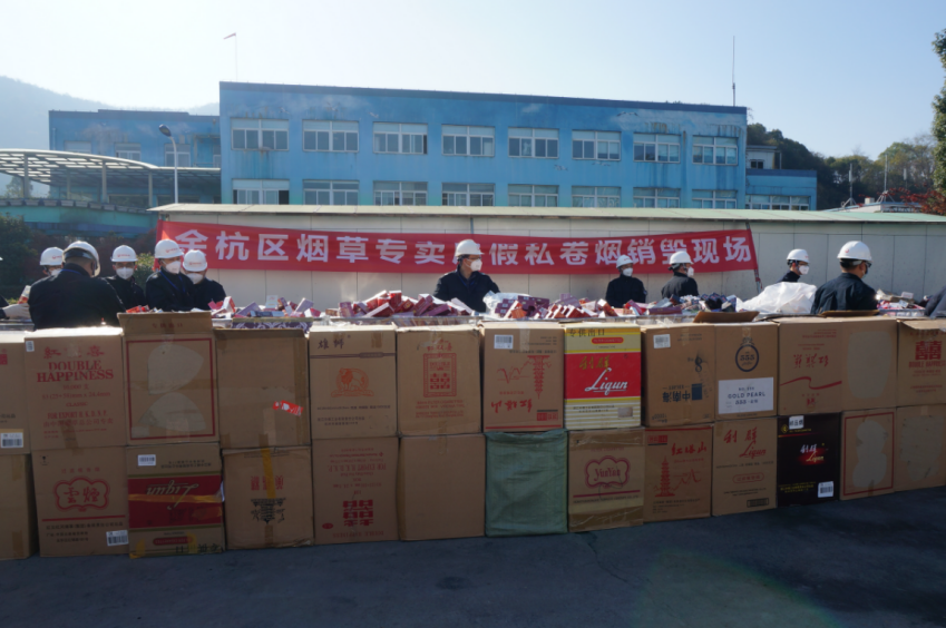 余杭區煙草專賣局每年都會組織該區其他行政部門,聯合開展集中銷毀假冒偽劣卷煙、走私卷煙活動,并全程直播銷毀過程,以鐵腕力度震懾銷售假私卷煙的違法分子。