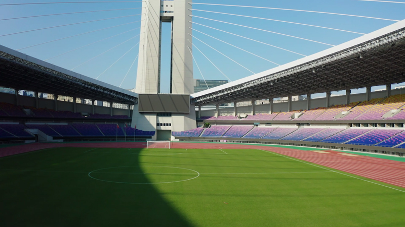 他們站在黃龍體育場錨固草坪上,看著由南北塔“變身”而來的“空中高清大屏”。這塊大屏既可隨時上演美輪美奐的燈光秀,也可實時呈現賽事演出活動的現場畫面。