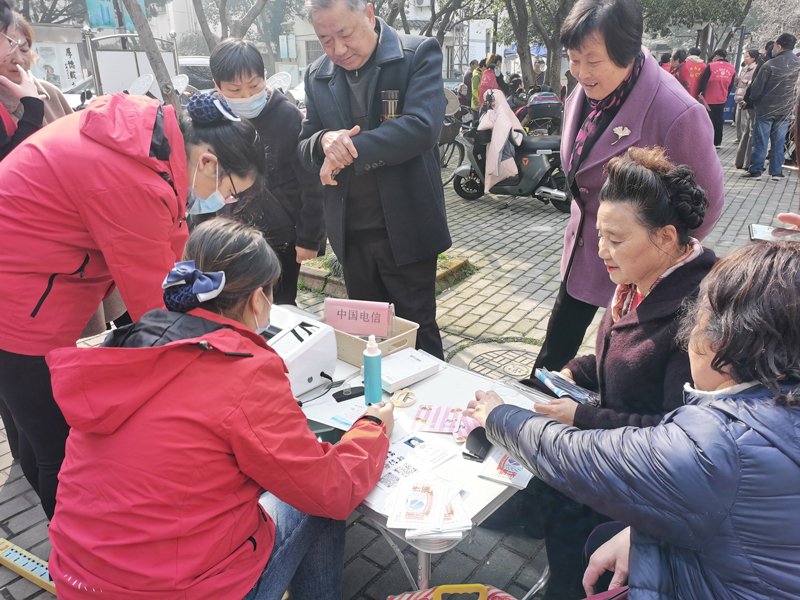 在湖州市,苕溪路電信營業廳參與馬軍巷社區黨總支和馬軍巷社區幸福鄰里聯合舉辦的“傳承雷鋒精神,共建小巷大愛”活動,為市民提供“愛心翼站”適老化服務,包括免費貼膜、手機殺毒、手機應用輔導等。同時參與活動的還有銀行、牙科診所、母嬰店等,為居民提供測量血壓、理發、牙齒檢測等惠民服務,收獲了居民的一致好評。