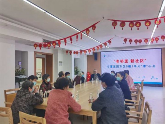 斗潭家園小區是一個回遷安置小區,2017年斗潭片區危舊房征收后,相熟的“老斗潭”們被“打散”了。2021年斗潭家園建成交付,大家陸續搬回了“新斗潭”。為進一步促進居民交流,增進鄰里感情,信安街道斗潭社區黨委召開了斗潭家園東區5幢1單元樓道業主“潭”心會,把戶主大會開進了樓棟。
