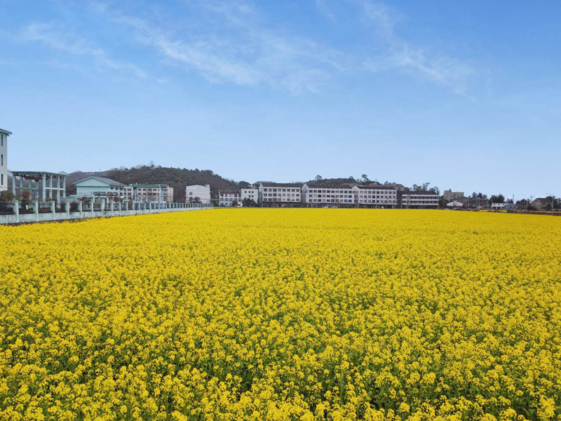 3月6日,走進這片花田,滿眼都是盛放的油菜花。相較別處,這里的油菜花盛開更茂盛,上開花、下結莢,已進入“花謝期”。葉守敏介紹,他所種的是本地自留種油菜花,俗稱“黃籽”,相比雜交品種生長時間更短,因此觀賞期也來得更早些。