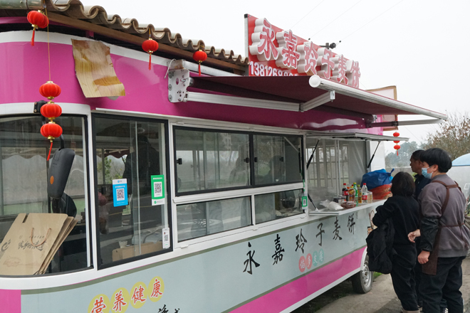 李美玲就是其中的一位受益者,“下家岙村一聽就知道是小山村,過去農民種點東西,賣出去不容易,日子過得緊巴巴的!4年前,一直在外經商的李美玲和丈夫回到村里,在村口做起了麥餅生意!艾F在來游玩的客人越來越多,生意還不錯,一天能賣300來個。做不過來,我還從村里雇了一個人幫忙!崩蠲懒針泛呛堑卣f,櫻花給村里帶來了旺盛的人氣,也給村民創造了致富的機會。