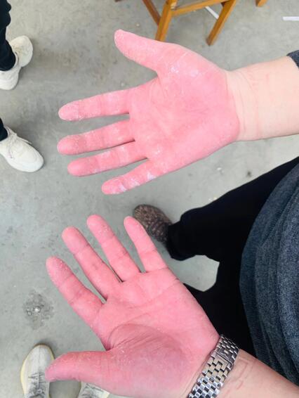 “疫”線逆行 他的雙手因酒精和汗水過敏紅腫