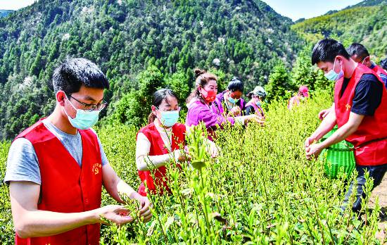 3月20日,在距離金華城區50多公里的婺城區箬陽鄉箬陽村,來自婺城區農業農村局的專家在茶園指導茶農采摘春茶。鄉、村干部等組成支農服務隊,幫助茶農一起采摘春茶,解決采茶工人短缺難題。據悉,茶產業是婺城區八大農業主導產業之一,目前婺城共有茶園種植面積3.1萬畝。(吳潮宏)