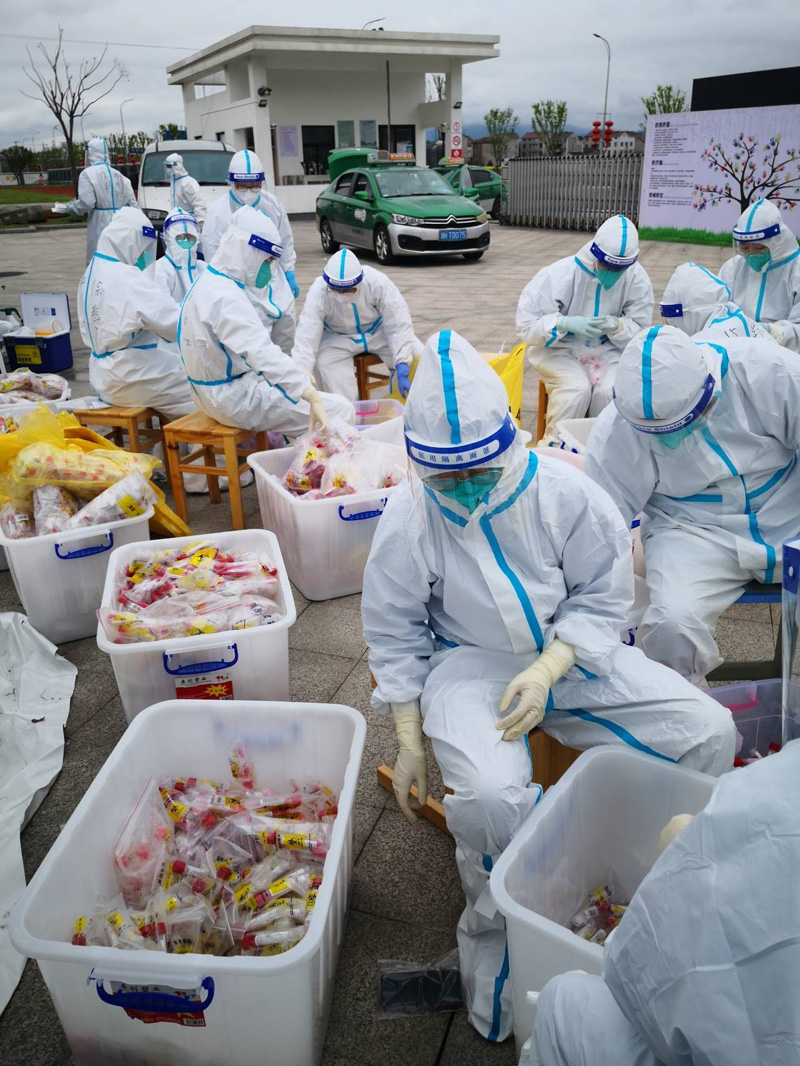 “為了不耽誤一分鐘,隊員們把吃飯的時間都壓縮在10分鐘以內,分批次就餐,確保檢測工作‘不停歇’!标犻L王娜娜負責每日的分工與協調,卻在勸隊員休息一會兒時“碰壁”!昂芏嗤略跈z測臺前一坐就是好幾個小時,我想讓他們休息一下,總會被他們拒絕!蓖跄饶日f,為了搶抓時間,隊員們每天都工作到深夜。為避免上廁所,口渴了也不敢多喝水,他們說:“我們快一點,風險就少一點!”