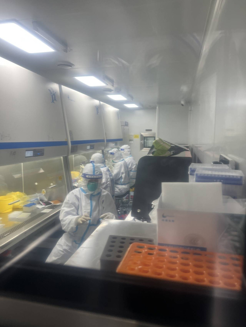 PCR實驗室溫度高,長時間穿著防護服的工作人員汗流不止;核酸提取時不能分心,輕柔的動作能有效避免氣溶膠的產生,從而減少對樣本的污染;每加一次陽性質控標本就必須更換一副手套……時間長了,面屏開始模糊了,手開始酸了,衣服開始濕了,但他們不敢有絲毫懈怠,不斷重復,直至完成當天的檢測任務。由于長期重復手工操作,每個人都留下了不同程度勞損,但他們毫無怨言,只希望能快些檢測,快些出結果,早發現,早治療!皩τ诳刂埔咔閬碚f時間太重要了!标爢T李純建說。