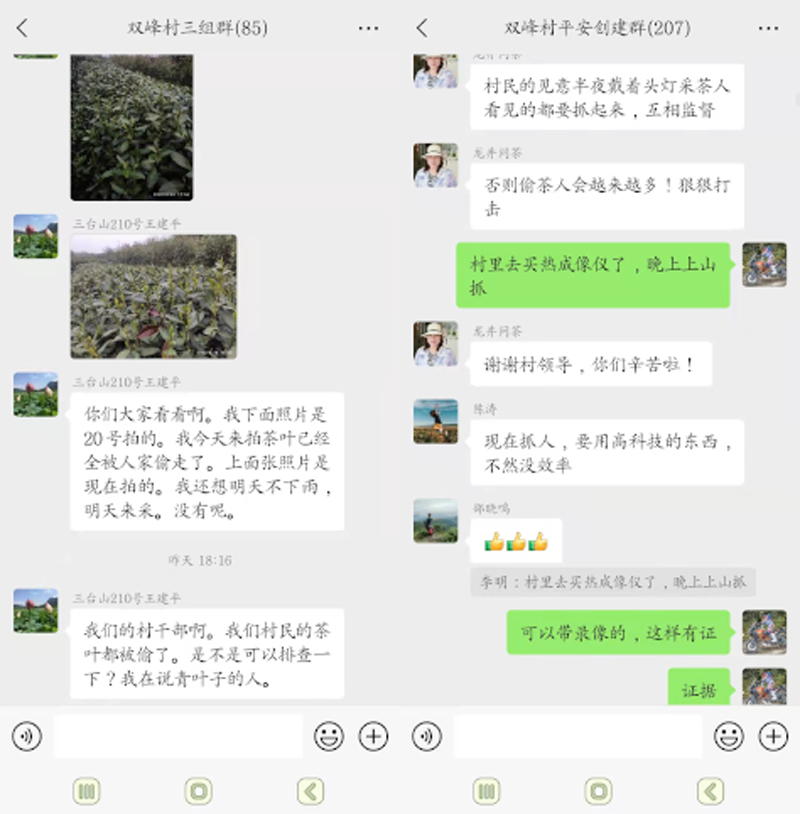 沒想到,在購買儀器后的第二天清晨,困擾茶農許久的兩名偷茶賊就被順利抓到,目前二人已被警方帶回派出所處置。