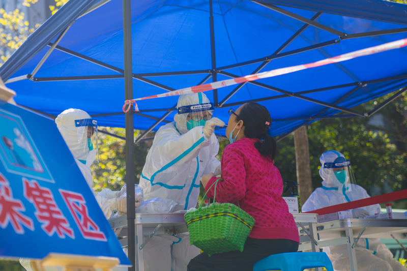 “居民朋友們,可以下樓做核酸了,帶上手機、身份證……”當天上午7時,核酸采樣點全員到位,一切準備就緒。網格員分工合作,有的拿著小喇叭花式“喊樓”,有的利用微信群或電話提醒,發動居民到小區內的各采樣點進行核酸檢測。掃碼測溫、信息登記、秩序維護、采樣完成……在現場醫務工作人員、公安、街居干部、區級機關下沉力量、各街道支援力量及志愿者的共同努力下,各環節無縫銜接,有效落實,全員核酸檢測工作順利有序進行。當天上午12時,隨著工作群一句“最后一個網格也都做完了”的信息發出,江北部分區域全員核酸檢測篩查采樣樣本收集工作全部完成,核酸樣本被轉送至檢測中心進行檢測。