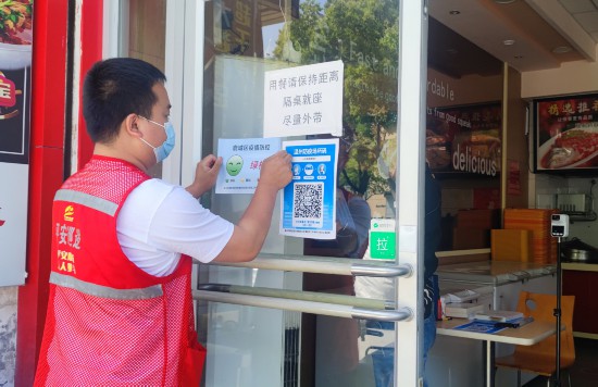 據街道相關負責人介紹,“三色預警”實施一個星期以來,街道紀工委已經針對轄區餐飲、超市、美容美發等重點場所防疫落實情況開展隨機督查百余次,總計貼出綠色微笑表情包107個、黃色難過表情包12個、紅色哭泣表情包2個。街道紀工委對已經張貼表情包的場所實施動態監督,督促責任主體對紅色問題三日清零、黃色問題二日清零,綠色場所一旦出現問題反彈,隨時“變臉變色”并督促整改到位。