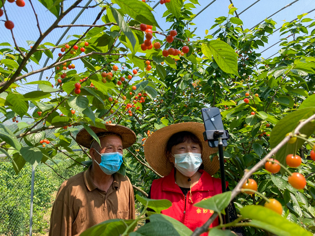 近日,在金華市金東區赤松鎮虎巖村,“短柄”櫻桃成熟,猶如一盞盞小燈籠掛在枝條,村黨員志愿者網上幫助農戶吆喝;r村黨支部書記王基林介紹說,全村櫻桃種植面積1300多畝,品種有傳統的短柄、黑珍珠以及新引進的紅妃,櫻桃銷售收入成為村民的一項主要經濟來源,這幾天天氣晴好,櫻桃成熟快,一星期后上市量更大,采摘期持續到5月初。2022年為了防控新冠疫情,村黨支部組織黨員和志愿者把農戶采摘的櫻桃派送到指定地點,方便預訂的客戶拿取。(時寬兵)