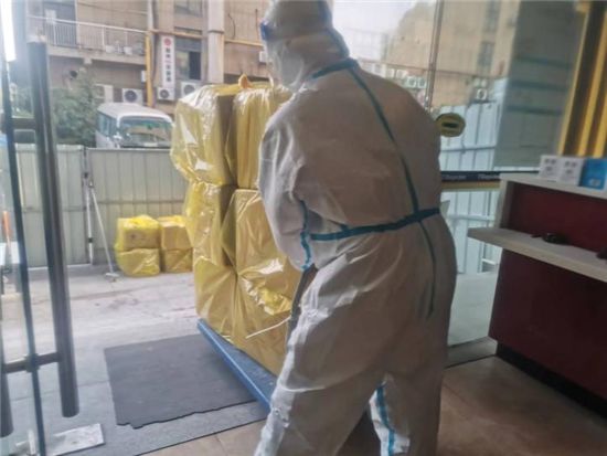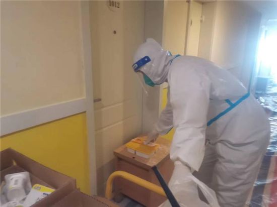 每天早上6點,經過全身消毒后,楊康便開始了一天忙碌的工作。清潔餐車、為隔離人員配送三餐、清潔公共區域衛生、回收垃圾并轉運至指定地點、做好隔離人員需求登記、做好個別隔離人員心理疏導、配合醫護人員接收轉運留觀人員并做好相關消殺工作……直至凌晨,他才能結束一天的工作。