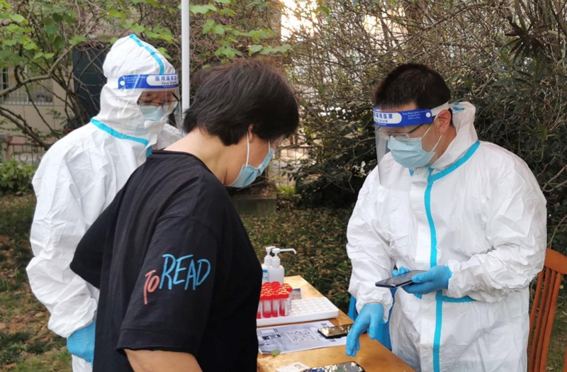 “香溢”志愿服務隊隊員協助核酸檢測。蔣狄倪攝