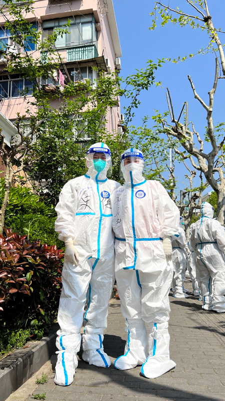 妻子孫啟虹是醫院門診手術室護士長,此前已參加大大小小防疫工作多次。在本次援滬工作,作為小組長的她,負責帶隊到社區為居民采集核酸,不僅要保證采集規范標準,更要監督隊員做好防護。