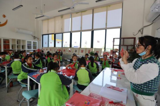 環顧教室,墻上、窗上,或懸掛或張貼著各式各樣的剪紙作品,而這些作品都出學生之手!凹艏埵俏覀儗W校最受學生歡迎的社團課,也是學校的特色課程!膘`峰小學教務處副主任葛徽告訴記者,學校一直積極開展鄉村“復興少年宮”建設,挖掘自身特色,豐富學生的校園生活,培養其興趣特長。