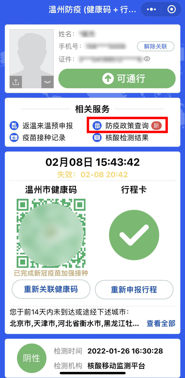 其實,在浙江省溫州市推出的溫州防疫碼小程序中,就已經實現了健康碼與行程卡在同一界面顯示,還融合了返溫來溫預申報、防疫政策查詢、核酸檢測結果等相關服務,受到市民的好評。