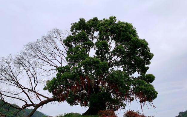 羊棚頭的村南,有一棵樹齡300多年的古樟,枝干上飄滿了用來祈福的紅絲帶。樹下,幾位游客忙著拍照留念。
