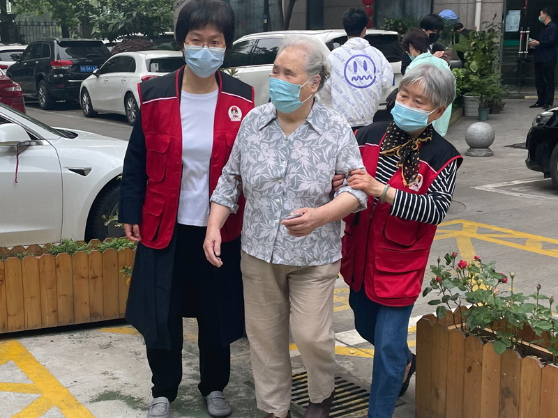 “我們每天都會給老人打電話,告訴他們疫情期間減少出門,問他們有什么需要!眲偱阃晃焕先巳c位做好核酸的俞翠英說。