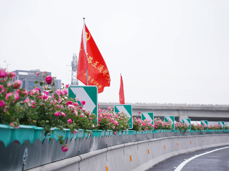 與此同時,文一西路匝道處還將設置總長度約0.6公里的“月季花廊”,雙向共放置約1200個花箱,種植月季約4000株,采用“分段統一”的色彩搭配方式,顏色由淺漸深,層次感分明,給往來駕駛員美的享受。