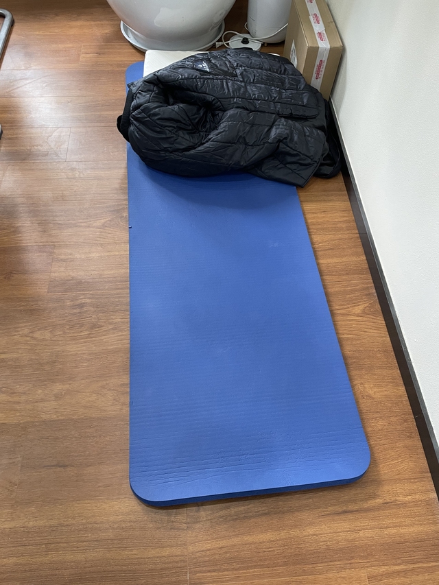 據了解,從4月21日開始,范建立帶領隆昌社區全體工作人員一直堅守“三區”,每天高負荷連軸轉,忙到凌晨兩三點成為了常態。他把社區的沙發和值班室的床讓給了其他工作人員,自己則在辦公室里鋪了一張瑜伽墊“打地鋪”!袄Я四睦锒寄芩,我睡地上睡習慣了。只要居民平安健康,我們苦點累點沒關系!狈督⒄f。