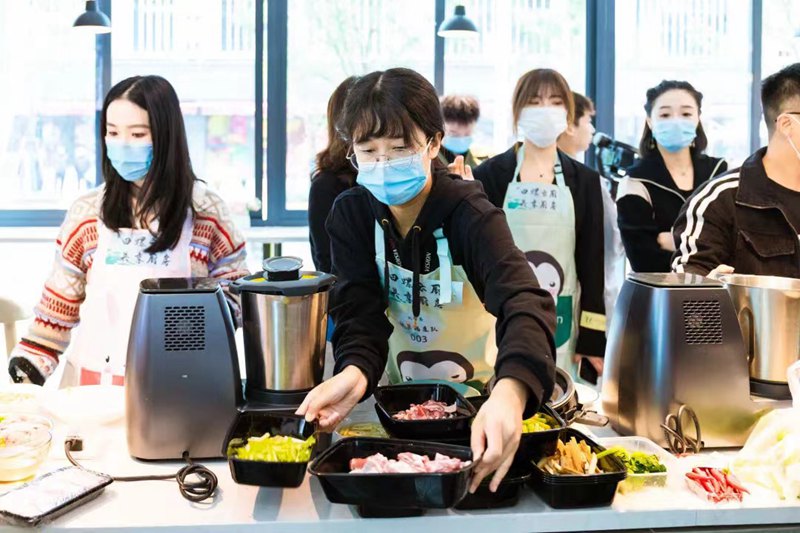 走進社區內的繽紛食堂,一群下了班的年輕人正聚在AI烹飪機器人前忙活著!捌綍r工作比較忙,下了班犯懶不想做飯,還好這里有AI烹飪機器人幫我們解決了吃飯問題!毙☆櫴巧鐓^里的新住戶,她已經習慣了下班后和朋友一起來繽紛食堂吃飯,“各種美食都傳到了云端菜譜,只要備好凈菜,AI烹飪機器人便能依照每個人的口味開始烹飪工作,不會做飯的人都能燒出美食!笨紤]到不少年輕租戶不會做飯,下班也比較遲,但是仍然想“吃頓好的”這一需求,社區引進了AI烹飪機器人。