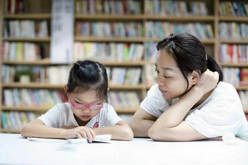 在繽紛城市書房,家長陪伴孩子一起閱讀。繽紛未來社區供圖