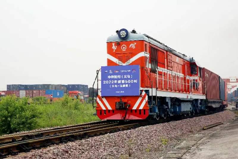 中歐(義新歐)班列義烏平臺2022年發運的第500列出發。王建明攝