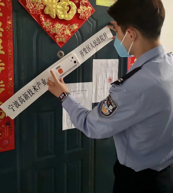 當日,承辦法官還前往寧波鎮海用“電子封條”查封了另一起債務糾紛被執行人的房產。