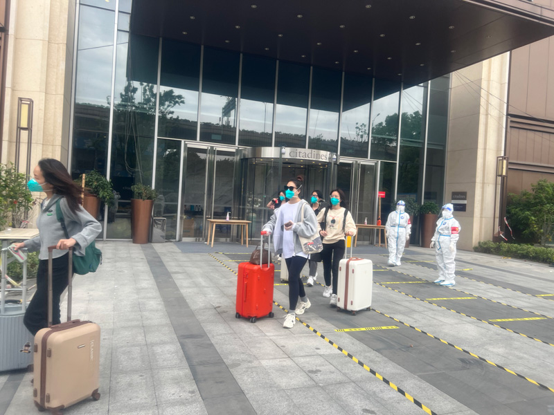 隔離人員解除隔離后離開隔離點。石橋街道供圖