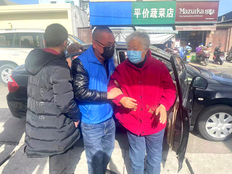 網格員駕車全程接送行動不便老人接種新冠疫苗。樊佳麗攝