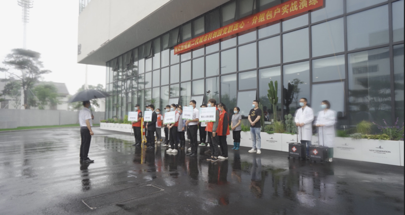 “物資分配組集合完畢!”“動員協調組集合完畢”……新二代城市科創園以出現1名核酸初篩陽性人員為背景,演練正式啟動后,各工作組聞令而動,10分鐘內五個小組人員迅速集結到位。