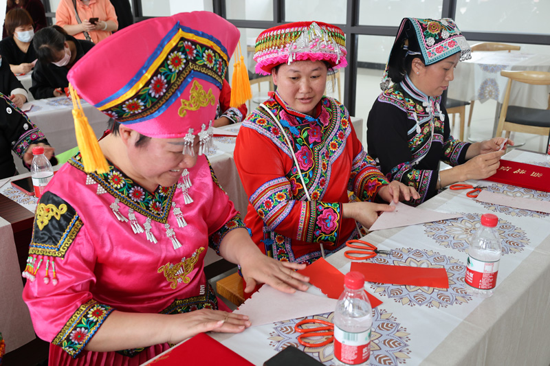 各民族婦女參加民族特色剪紙活動。王嘉薇攝