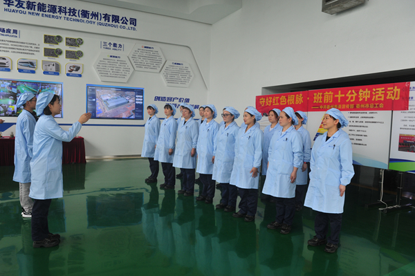 華友衢州產業園工會將原來的交接班晨會活動內容進一步完善補充,除了業務工作外,增加了“思政課”的內容。各車間班組可根據實際情況,上好“班前十分鐘思政課”。有的開展“理論知識通俗說”“時政要聞簡單說”“閱讀沙龍職工說”“企業文化人人說”,有的開展互動性強的“故事分享十分鐘”活動,有的開展頭腦風暴、“建言獻策十分鐘”活動。這種看得見、摸得著、生動活潑的“班前十分鐘思政課”,深受職工喜愛。