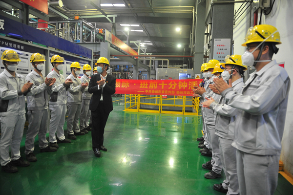 “作為一名技術工人,今后我一定更加刻苦學習技術,苦練本領,當一名新時代的工匠!薄笆械诎舜吸h代會提出了‘工業強市、產業興市’戰略,作為一名產業工人倍感光榮,肩上責任重大!薄敖裉,我們迎來了疫情解封后企業復工復產的第一次班組會,讓我們以《風雨過后是彩虹》這首歌作為開場白,來開展‘班前十分鐘活動’!5月10日,華友衢州產業園和衢州紅五環集團公司開展了“班前十分鐘,思政課進班組”活動。