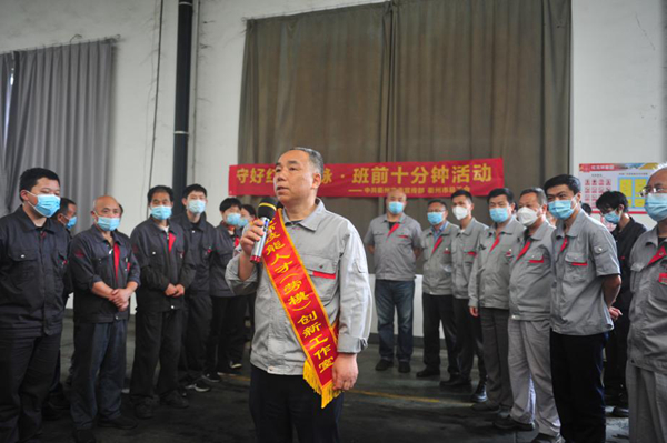 集團公司工會充分利用勞模多、工匠多的資源優勢。班前會成為員工拜師學藝的“技術沙龍”。全國五一勞動獎章、浙江首屆大工匠徐建雄,分享自身成長經歷勉勵班組員工刻苦學習,鉆研技術,當一名新時期優秀的產業工人。在他的影響幫助下,他的多名徒弟成為市級勞模、市級工匠和市級技術創新能手。在這期特殊班前會上,衢州市總工會副主席劉新輝還為“毛金龍創新工作室”授牌,勉勵更多的員工學文化學技術。
