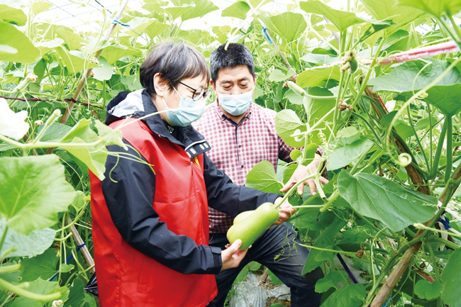 5月13日,金華市金東區農業農村局“好好助農先鋒團”農業專家來到金東區曹宅鎮東京村,指導蔬菜種植大戶雨水天氣田間管理工作。在一蔬菜種植基地,農業技術推廣研究員嚴志萱告訴農戶,雨水天氣尤其要注意開溝排水,防止蔬菜瓜果受淹;連續降雨空氣濕度大,注意通風排濕,及時防治灰霉病、菌核病等病害及白粉虱等蟲害發生。(時寬兵)