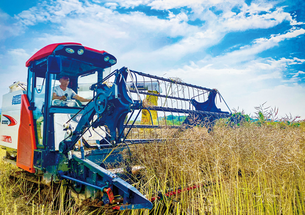 5月16日,在金華婺城區雅畈鎮雅畈二村,油菜收割機在農戶汪佩昌的油菜地里穿梭,兩畝多地只用了10分鐘就完成收割。這片油菜地是去年該村的“非糧化”整治地塊,完成整治后立即種上油菜。為方便村民收割,村委會聯系機械收割專業隊伍,為種植戶上門服務。等全部收割完,將安排機械進場翻土,種植水稻。(時寬兵)