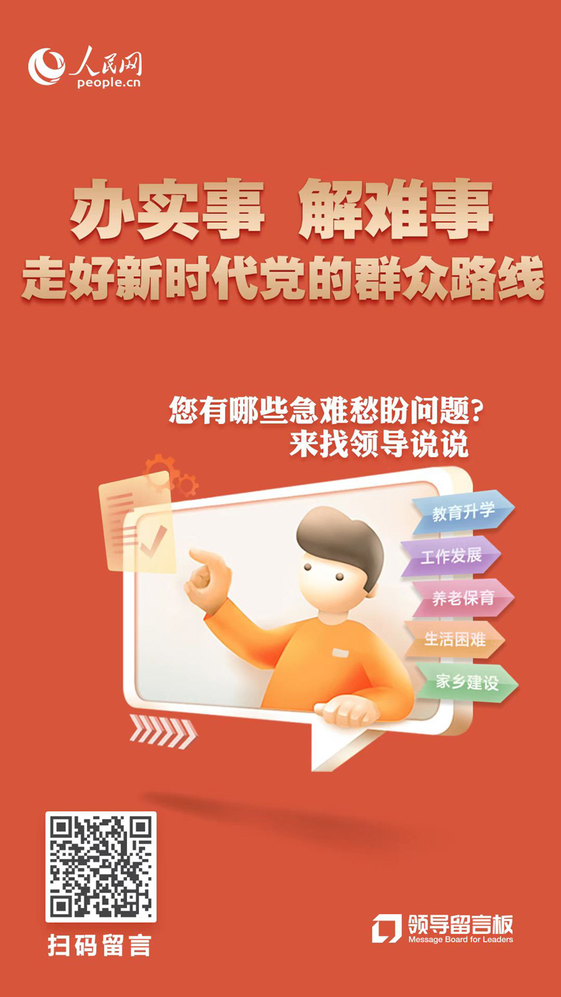 悠悠萬事,民生為大。日常工作生活中您有哪些亟待解決的困難?關于疫情防控,您有哪些訴求與建議?歡迎隨時來人民網“領導留言板”,跟我們嘮嘮您的煩心事。