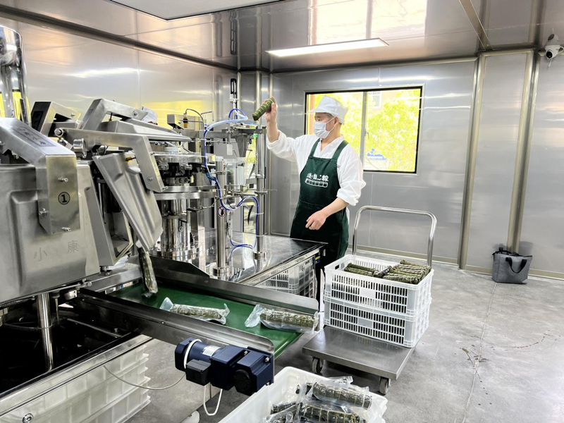 “我們每人每天可以包400多根粽子,一年下來,光是包粽子的這幾個月就能賺三四萬元工資。在家門口打工,還方便照顧家人!碑數匾霍諒S工人張冬梅說。