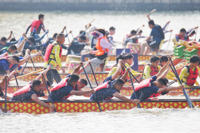 在6月2日的比賽上,連續12年奪得團體金獎的嘉興嘉善姚莊漁民村踏白船隊再次衛冕。隊長顧建林表示,這次隊員們就是奔著“13連冠”來的,踏白船從過去的“吃飯家伙”變成了現在的業余愛好,每到端午前夕,大家都會自發地調整工作擠出時間來訓練,“老祖宗傳下來的,曾經我們以此為生,今后也不能忘記!