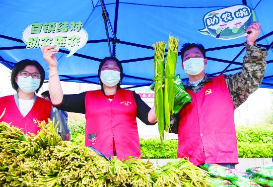近日,在金華婺城區乾西鄉湖頭村文化禮堂廣場上,箬陽鄉黨委書記、8個村的村支書以及市、區下派“第一書記”,正吆喝著產自大山深處的特色農產品——農家土蜂蜜、高山茶、箬葉。乾西鄉和箬陽鄉作為金華市“百鎮共建強基”結對單位,優勢互補、資源共享,攜手推進共同富裕。(時寬兵)