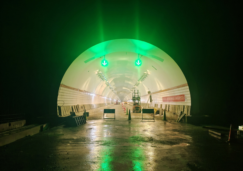 中堡隧道位于溫州市文成縣大峃鎮,全長692米。由于項目機電工程量大、時間緊、任務重,近百名攻堅隊員克服了隧道濕熱空間內交叉施工、登高作業等難題,最終實現了中堡隧道從照明燈具安裝到首次通電即照亮成功的目標。