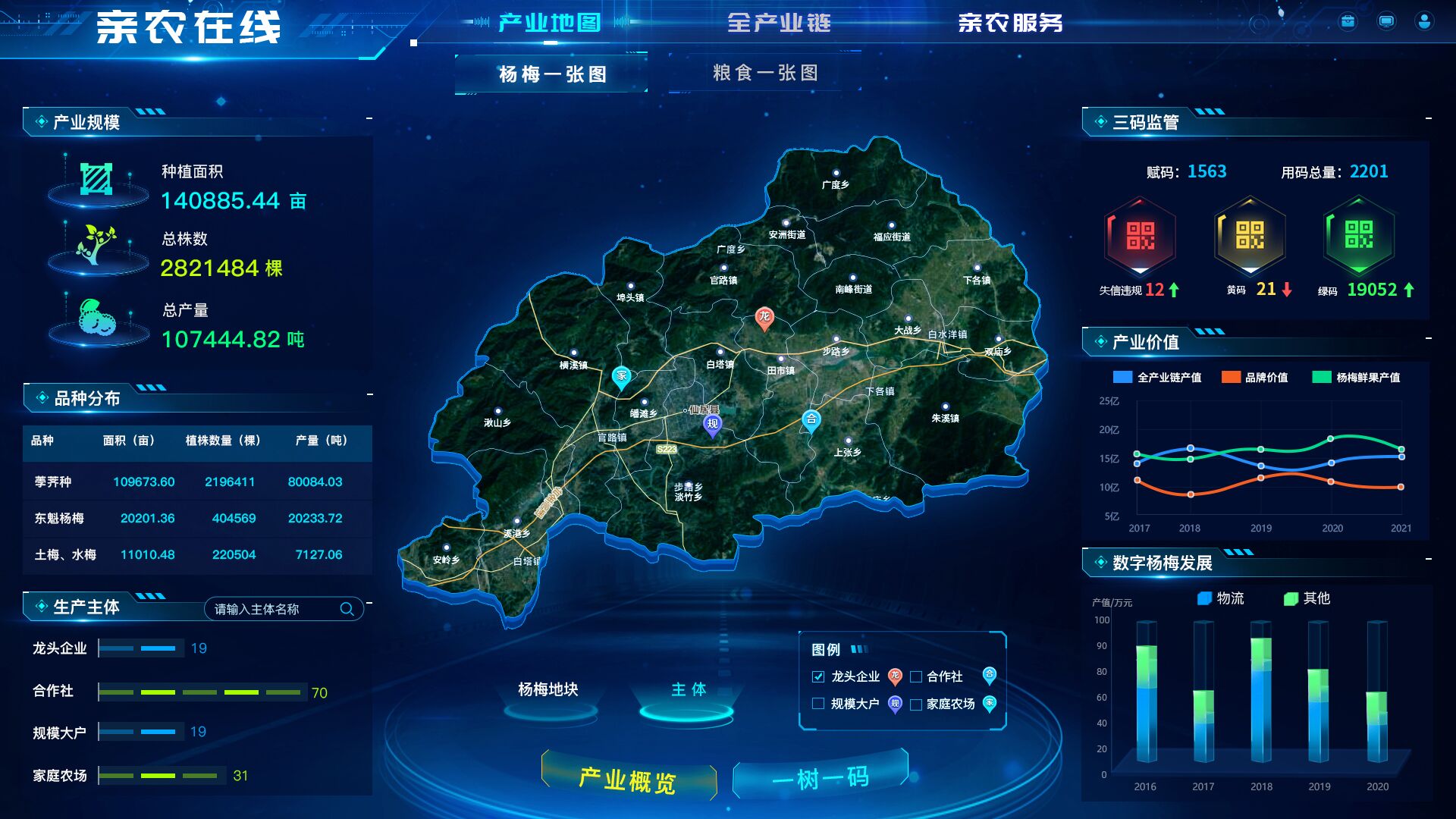 近年來,仙居縣針對重點農業產業楊梅,為全縣10萬名梅農繪制了“數據地圖”。種植畝數、種植分布、戶主信息、統防統治時間等與楊梅相關的20多項數據構成了一張獨一無二的產業地圖,這些數據來自稅務、氣象、銀行等12個部門,打造了集“種產銷”于一體的全生命周期數字鏈。這些數據如流水般澆灌著楊梅產業各環節,最終以“產業大腦”的形式反哺農業發展。