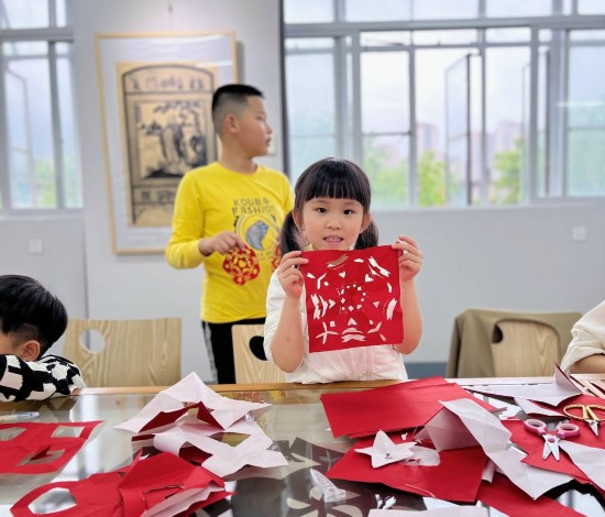 在寬敞明亮的特色體驗室里,一幅幅生動、精致的樂清細紋刻紙作品有的掛在墻上,有的擺在長桌上,大大小小的作品令人驚艷不已。隨后,樂清細紋刻紙傳承人鄭梅貞為孩子和家長們授課,只見她手指翻飛,用嫻熟技藝,很快就將一幅精致的作品展現在大家的面前,孩子們看了紛紛拍手,躍躍欲試!拔乙彩堑谝淮误w驗樂清細紋刻紙,真的是看起來容易剪起來難!币幻议L笑道,孩子們很感興趣,上完課后還覺得不過癮,跟鄭老師又多要了一些紙張,想帶回家繼續練。
