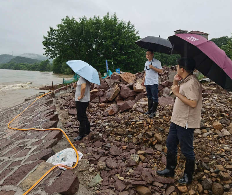 在杭州淳安,6月20日早上6點,楓樹嶺水庫因水位過高開始泄洪,位于下游的淳安大墅鎮防汛壓力驟增。大墅鎮第一時間組織網格力量、民兵隊伍等進行24小時值班值守,黨員干部和村兩委帶頭對各村低洼地帶進行緊急加固加高,避免洪水進入村莊和農田,對存在安全隱患的人群進行轉移。
