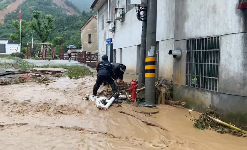 在麗水龍泉,受連續降雨的影響,多地發生房屋進水、河道滿水、山體塌方等情況,鄉村干部下沉一線,黨員志愿者積極參與,開展人員轉移、搶險自救等工作,確保群眾生命財產安全。