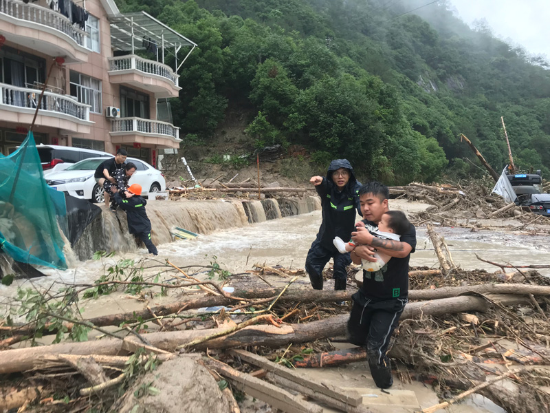 6月20日,龍泉市錦溪鎮吳林村發生大面積塌方,省道邊房屋被部分沖毀,2輛車輛被淹沒,駐村干部帶領村干部轉移留守兒童和老人,確保群眾生命安全。