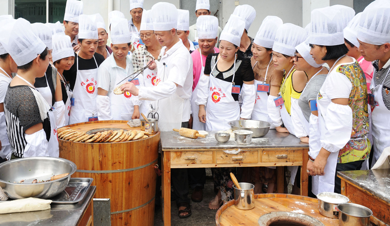 縉云燒餅師傅現場教學。麗水市委宣傳部供圖