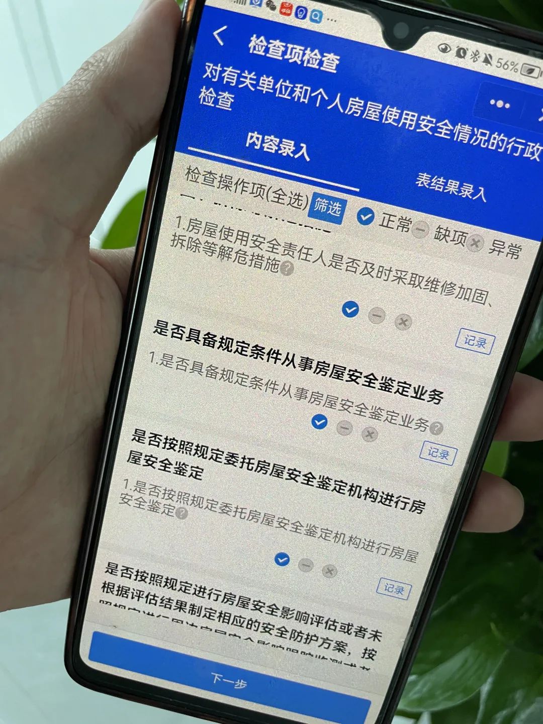 只見現場執法隊員拿出手機,打開“浙政釘·掌上執法”應用,通過主體庫找到待檢房屋裝修監管事項,添加《房屋裝修“一件事”綜合檢查表單》。