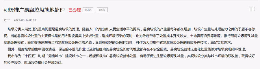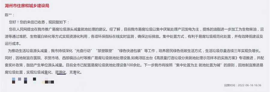 人民建議|建議推廣易腐垃圾就地處理 浙江湖州:已配置就地處理設備100余處